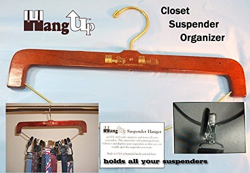 - Easily organize and display your suspender collection with the Hang-Up USA patented suspender hanger in wood and brass