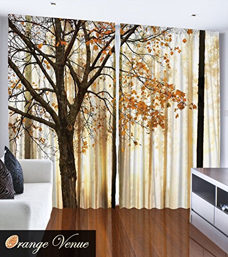 Description: Fall Trees - 108" x 90" - Bedroom or Living Room Curtain Panels - One of a Kind - 2 Panels - Machine Washable. These one of a kind curtains will help transform any room into your private sactuary! Made from a high quality silky satin polyester blend that provides an elegant look and is silky soft to the touch, perfect for any room. Curtains can be machine washed on cold, on the delicate cycle, and hung to dry.