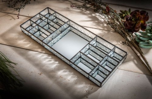 J Devlin TRA 132 Tiffany Styled Stained Glass Large Vanity Tray with Dividers Compartments Clear Vintage and Mirror Jewelry Tray