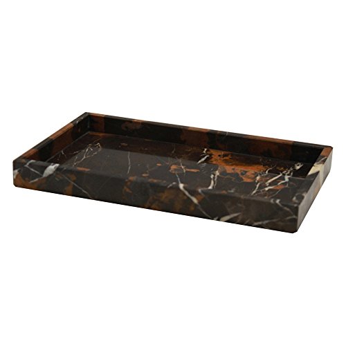 Description: Keep everything luxuriously organized with the Myrtus Tray - Black & Gold Marble. Handcrafted from a solid block of stunning black and gold marble, this handsome tray matches the Myrtus and Vinca collections perfectly. It's just right for your master bath and even includes felt pads on the bottom to keep your surfaces perfect. About Designs by Marble Crafters Inc.Designs by Marble Crafters Inc., a Dallas-Fort Worth-based company, offers exquisite handcrafted stone products, each item a result of over two decades experience in the art of stonecraft. Using genuine marble and onyx from the Himalayas and the Arabian Sea, the company’s craftsmen turn the natural, hard rocks in to polished masterpieces. Several rounds of hand sanding produce a natural brilliance radiating from the stone itself, not from a chemical glaze like other stone products. The company also prides itself on its unparalleled manufacturing, customer service, and prompt delivery. Handmade of a solid block of black and gold marble. Matches Myrtus and Vinca black & gold marble collections. Luxuriously organize your master bath. Felt pads on the bottom protect surfaces. Dimensions: 6L x 10W x 1H inches.