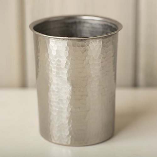 Description: Form and function combine beautifully with a rich hand-hammered silver-colored finish to enhance your bathroom décor. The rich hand-hammered texture brings warmth and depth to any counter, while the 100% recycled copper delivers the durability for everyday use. Made from heavy-gauge copper, the toothbrush holder is sturdy enough to relieve you from the anxiety of toothbrush tip-over.